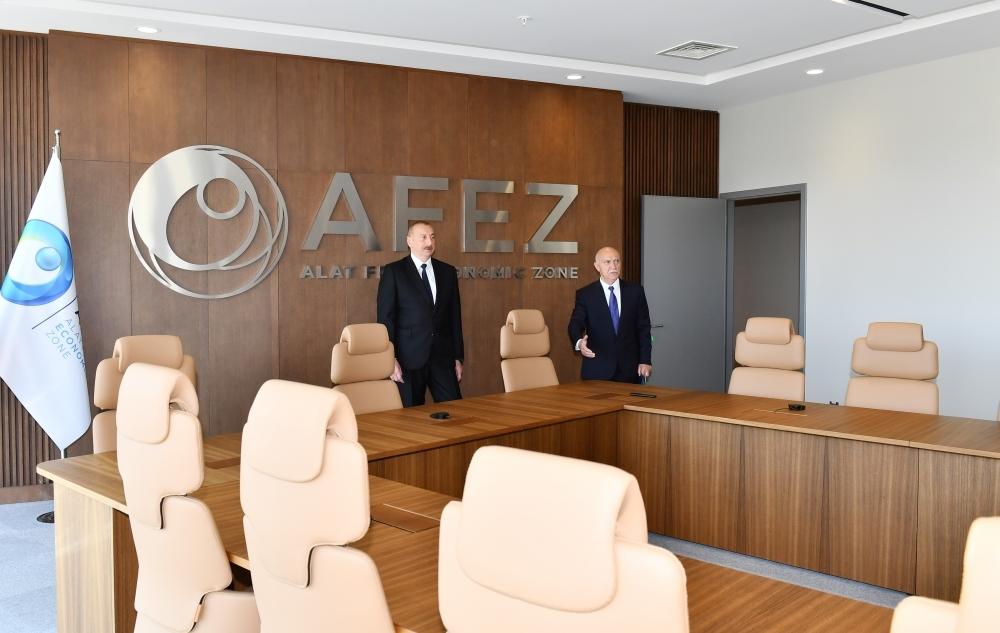 Dövlət başçısı Ələt Azad İqtisadi Zonasının Biznes Mərkəzində yaradılan şəraitlə tanış olub.