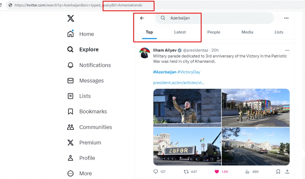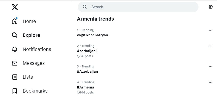 Belə ki, erməni istifadəçilər “X”-də ən çox Azərbaycanla bağlı xəbərləri axtarıblar və oxuyublar.