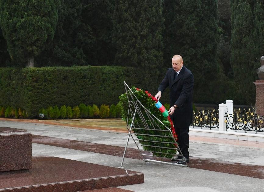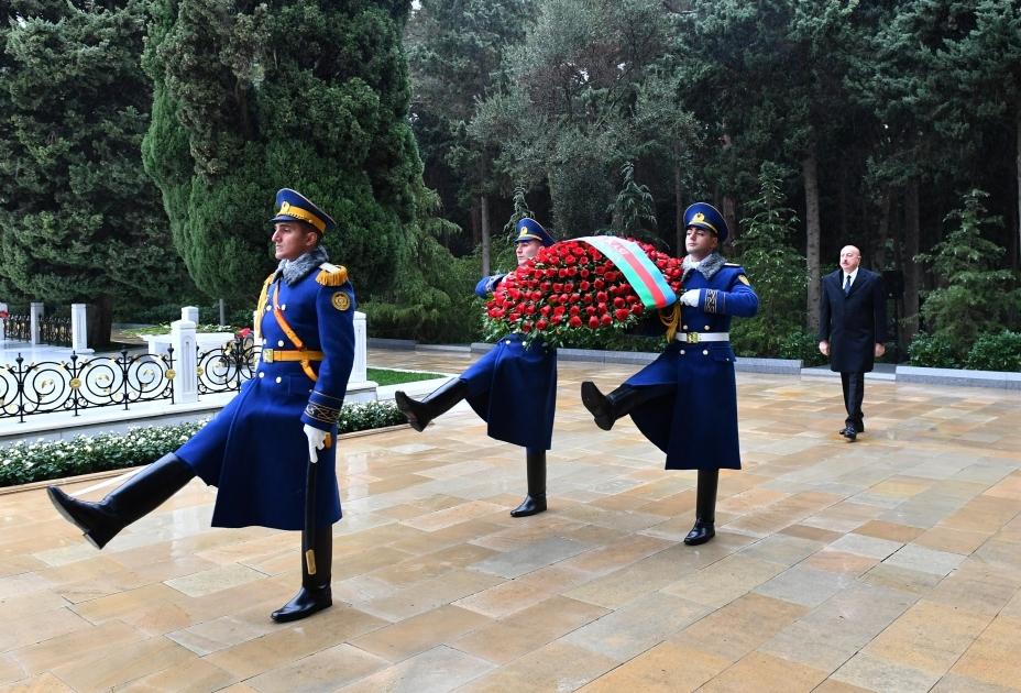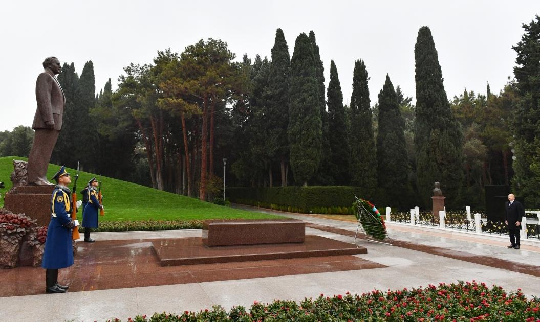 Sabah.az xəbər verir ki, Prezident İlham Əliyev ulu öndərin məzarı önünə əklil qoyub.
