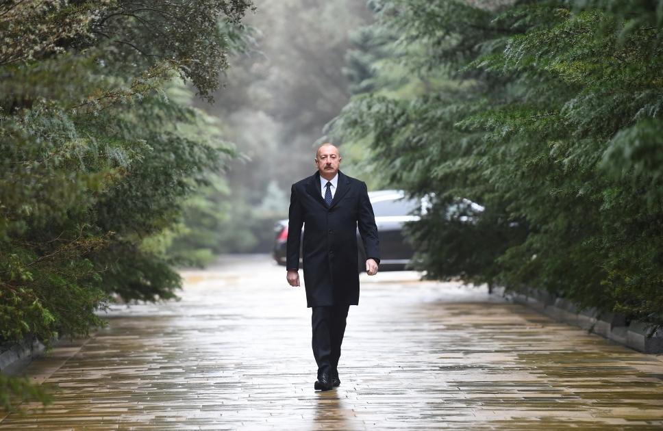 İlham Əliyev Heydər Əliyevin məzarını ziyarət etdi - Fotolar