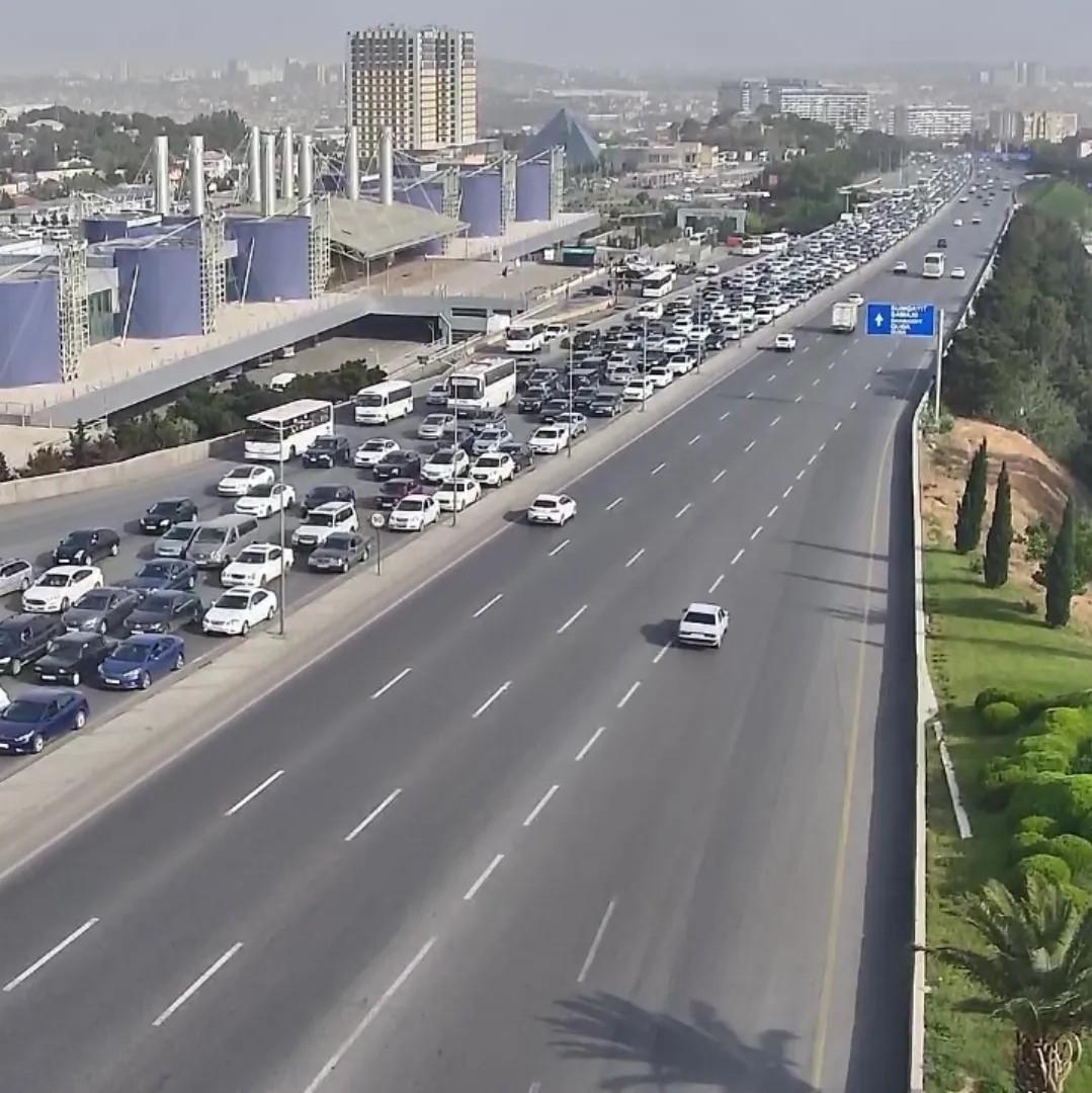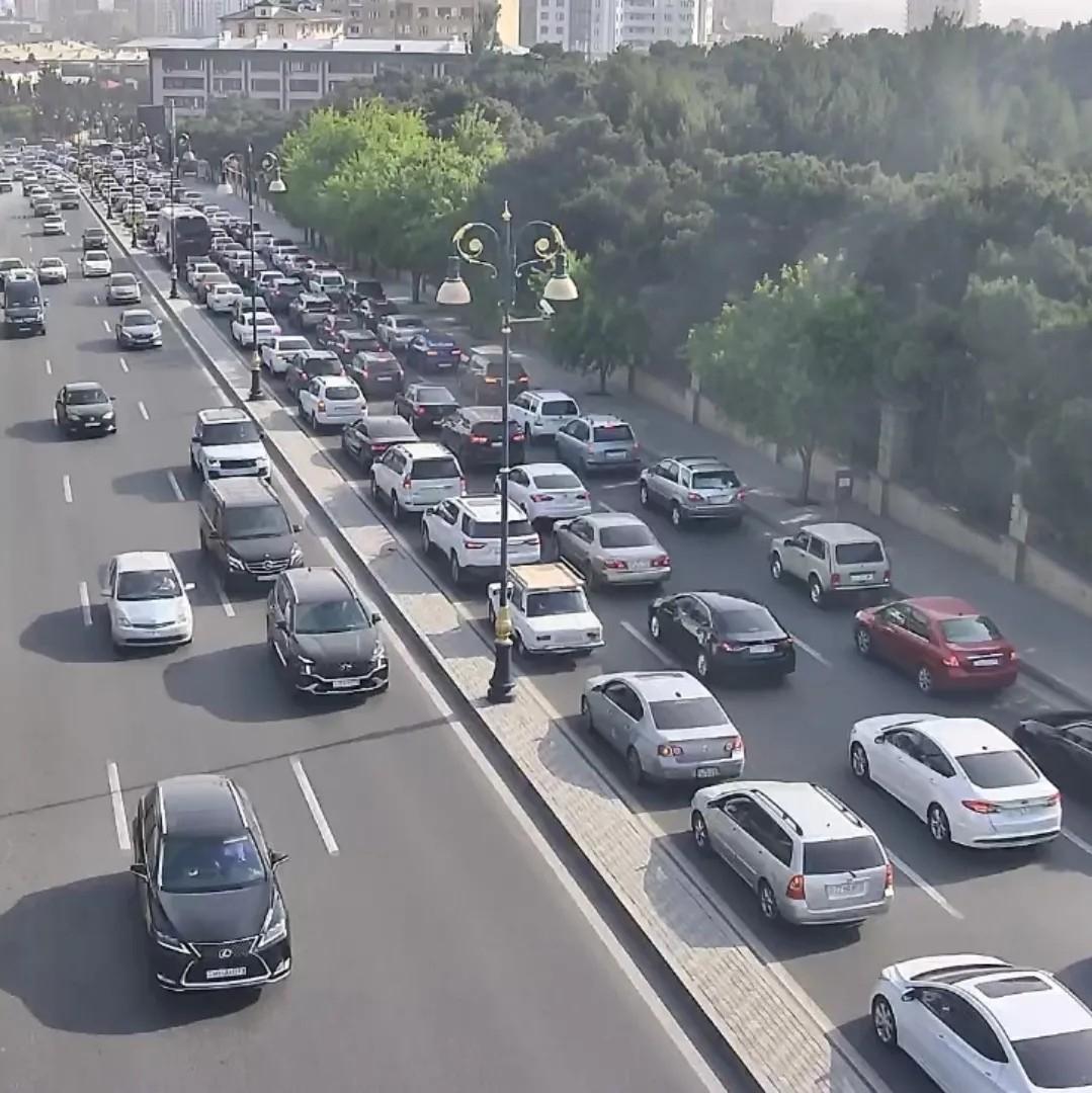 Bakının bir sıra yollarında tıxac yaranıb.