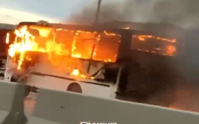 Bakıda sərnişin avtobusu belə alovlandı